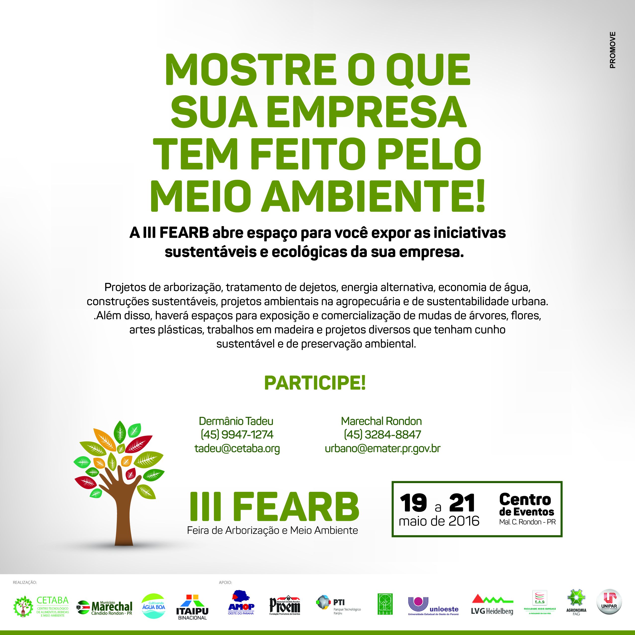 De 19 a 21 de maio acontecerá a III Feira de Arborização e Meio Ambiente (FEARB) no Centro de Eventos Werner Wanderer, em Marechal Cândido Rondon.