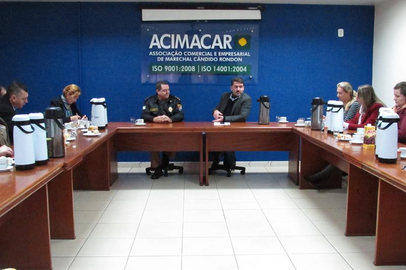 Na última terça-feira (07), a convite da Associação Comercial e Empresarial de Marechal Cândido Rondon (Acimacar), o Tenente Coronel do Batalhão de Polícia Militar de Fronteira (BPFron), Cezar Leroy Cooper, esteve presente na reunião da diretoria para apresentação e conversa de alguns temas relacionados ao município.