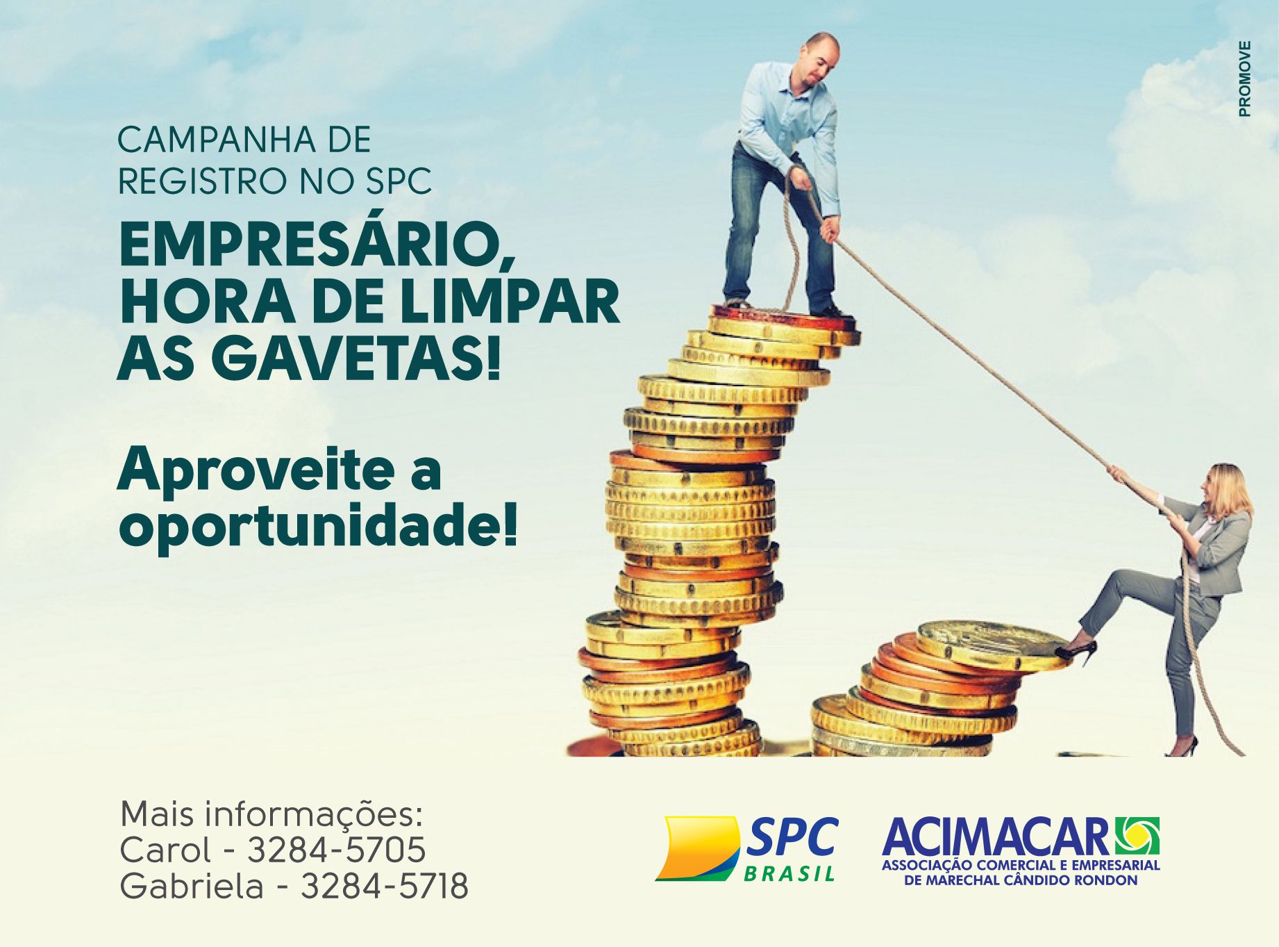 A Associação Comercial e Empresarial de Marechal Cândido Rondon (Acimacar) iniciou na última semana, nova campanha de registros de clientes inadimplentes no banco de dados do Sistema de Proteção ao Crédito Brasil (SPC), com 50% de desconto na inclusão para empresas associadas.