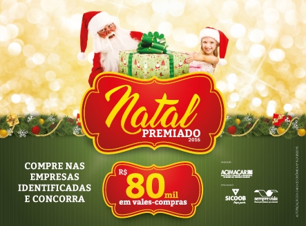 A campanha Natal Premiado, autorizada pela Caixa Econômica Federal, é uma realização da Associação Comercial e Empresarial de Marechal Cândido Rondon (Acimacar), com o patrocínio do Sicoob Marechal e Sempre Vida.