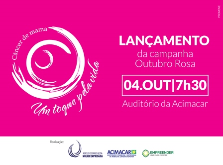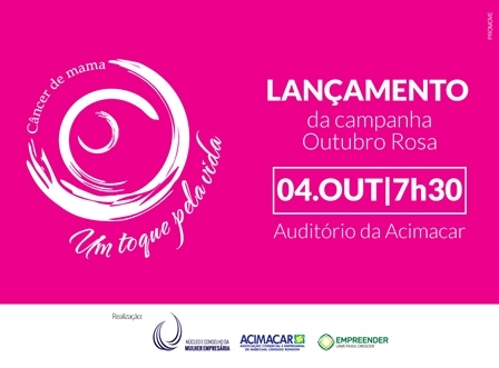 O lançamento oficial da campanha intitulada “Um Toque pela Vida” será realizada na quarta-feira (04). A cerimônia contará com apresentação da Oficina de Arte Circense – projeto do município, e o depoimento de uma das integrantes do grupo de apoio ao Câncer de Mama que já enfrentou a doença.