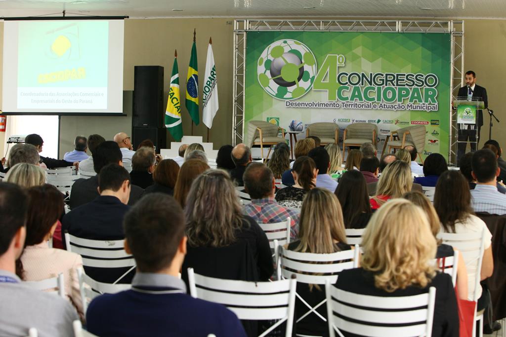 Cerca de 300 pessoas participaram na sexta-feira, em Cascavel, do maior encontro empresarial da região. O 4º Congresso Caciopar reuniu empresários, diretores de associações comerciais e técnicos de órgãos públicos e áreas produtivas, além de autoridades políticas. O compromisso foi um só: debater aspectos atuais e questões de futuro para o desenvolvimento do território Oeste. O consenso é de que o Brasil precisa seguir com o combate à corrupção e adotar o planejamento como instrumento para dias melhores a todos. Entre os presentes estiveram os deputados estaduais Marcio Pacheco, Elio Rusch e José Carlos Schiavinato e o presidente da AMP (Associação dos Municípios do Paraná), Michel Micheletto.