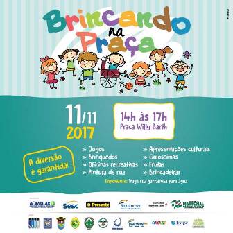 A realização da 14º edição do Brincando na Praça é uma parceria entre a Associação Comercial e Empresarial (Acimacar), o Serviço Social do Comércio (Sesc), Sindicato do Comércio Varejista (Sindicomar), Jornal O Presente e Secretaria Municipal de Esportes e Lazer.