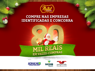 A campanha Natal Premiado, que acontece entre 20 de novembro a 27 de dezembro, é uma realização da Acimacar, com o patrocínio do Sicoob Marechal e Sempre Vida.