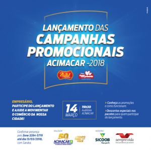 Assim, na próxima quarta-feira (14), às 19h30, será realizado no auditório da entidade, o Lançamento das Campanhas Promocionais. O intuito é que todos os empresários possam participar da noite para conhecerem os formatos das Campanhas neste ano especial que, ao todo, premiará 250 consumidores.