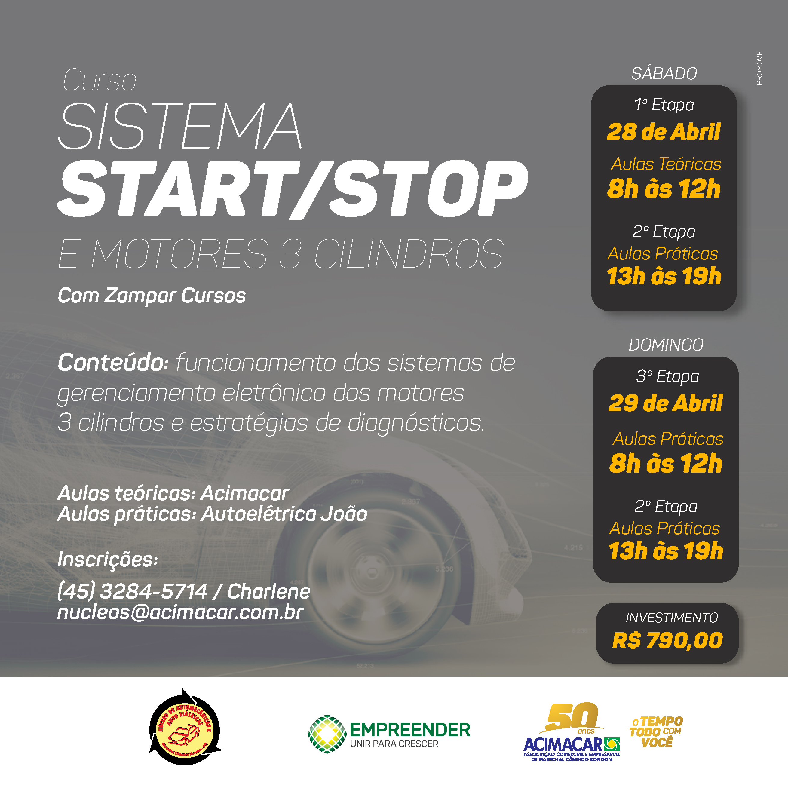 O Núcleo de Mecânicas e Autoelétricas, ligado à Associação Comercial e Empresarial de Marechal Cândido Rondon (Acimacar), realiza neste fim de semana, sábado (27) e domingo (28), o curso ‘Start/Stop e Motores Três-Cilindros’, conduzido pela Zampar Cursos, de Maringá.