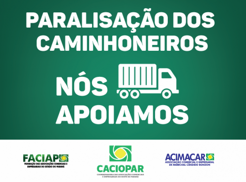 A Associação Comercial e Empresarial de Marechal Cândido Rondon (Acimacar) manifesta-se em favor da paralisação que reivindica a redução no preço do combustível.