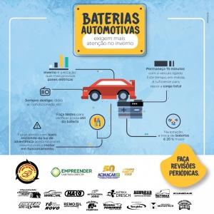 Com a chegada do inverno, os motoristas devem ficar ainda mais atentos à bateria do automóvel.  Nesse período, o motor de arranque exige mais energia da bateria para a partida e caso a capacidade de armazenamento não for suficiente, o veículo pode não funcionar ou surgir outros problemas.
