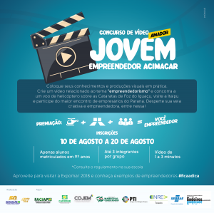 Com o objetivo de disseminar a cultura empreendedora entre jovens adolescentes, a Associação Comercial e Empresarial de Marechal Cândido Rondon (Acimacar) promove o concurso de vídeo amador com o tema “Empreendedorismo”.