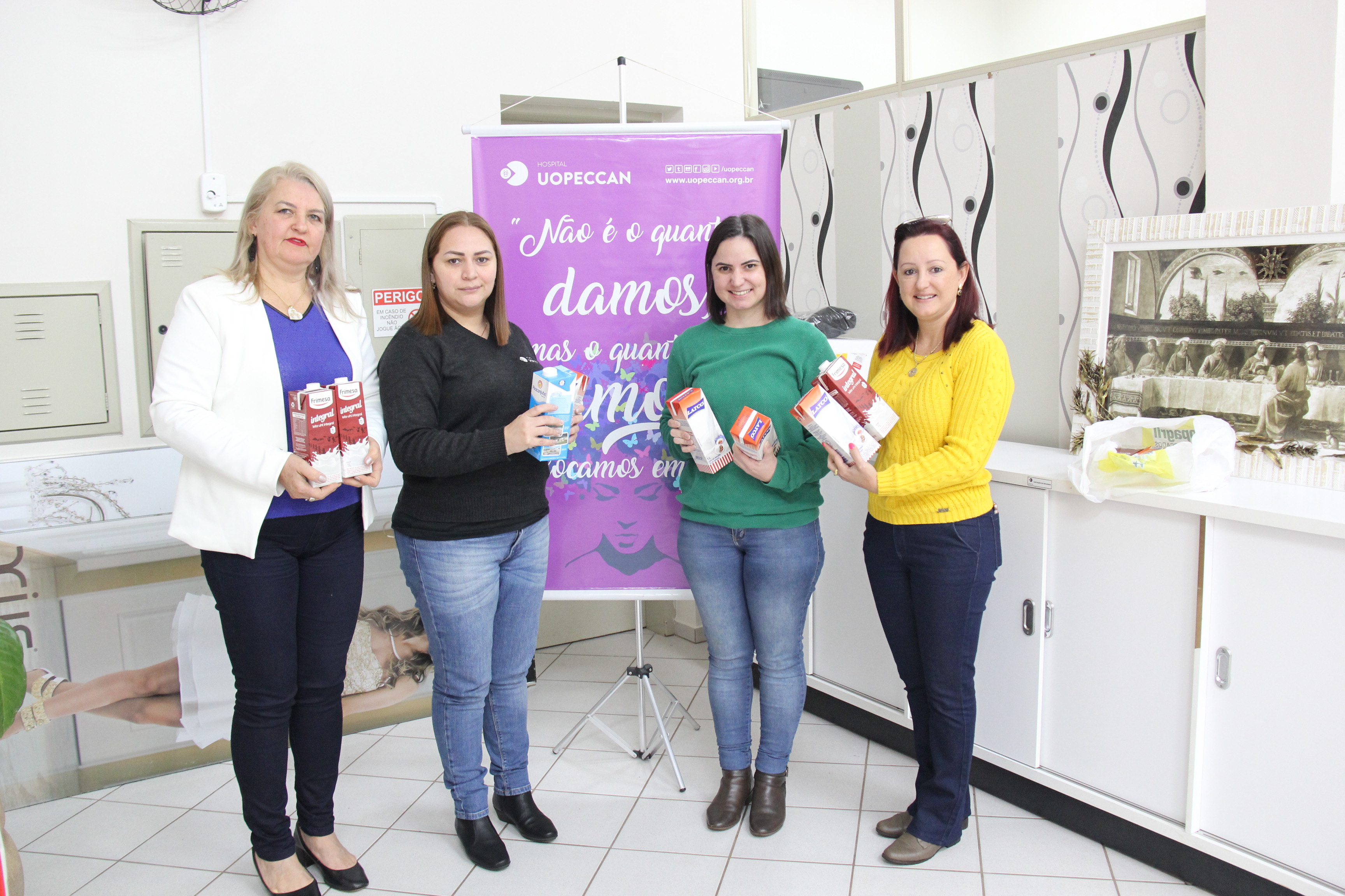 O Núcleo e Conselho da Mulher Empresária e de Profissionais de Contabilidade realizaram a entrega de 93 litros de leite longa vida à Casa de Apoio do Hospital do Câncer de Cascavel, Uopeccan, na última semana.