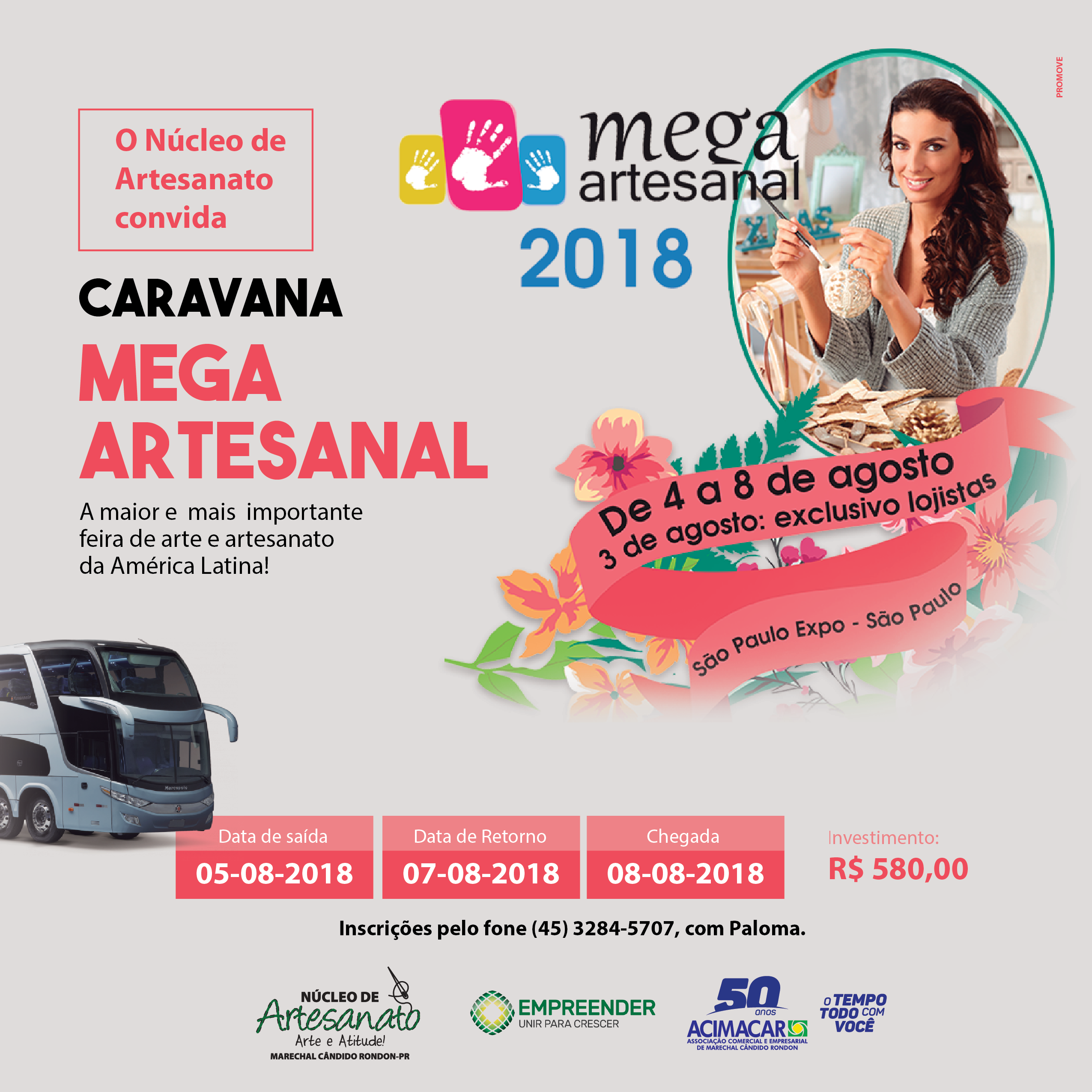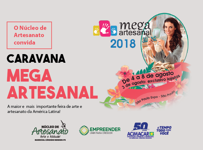 O Núcleo Setorial de Artesanato da Associação Comercial e Empresarial de Marechal Cândido Rondon (Acimacar) organiza nova missão empresarial para a maior feira de produtos e técnicas para arte e artesanato da América Latina, a Mega Artesanal, em São Paulo.