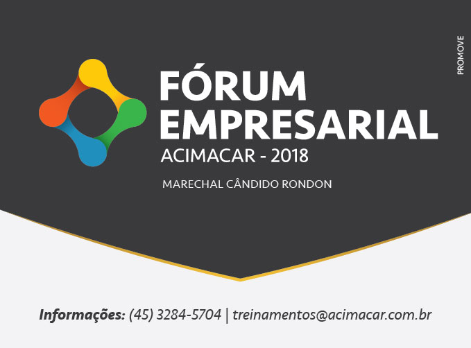 Promovido pela Associação Comercial e Empresarial de Marechal Cândido Rondon (Acimacar) e parceiros, o Fórum Empresarial é dividido em três encontros, em semanas diferentes, e com palestrantes de renome nacional e internacional.