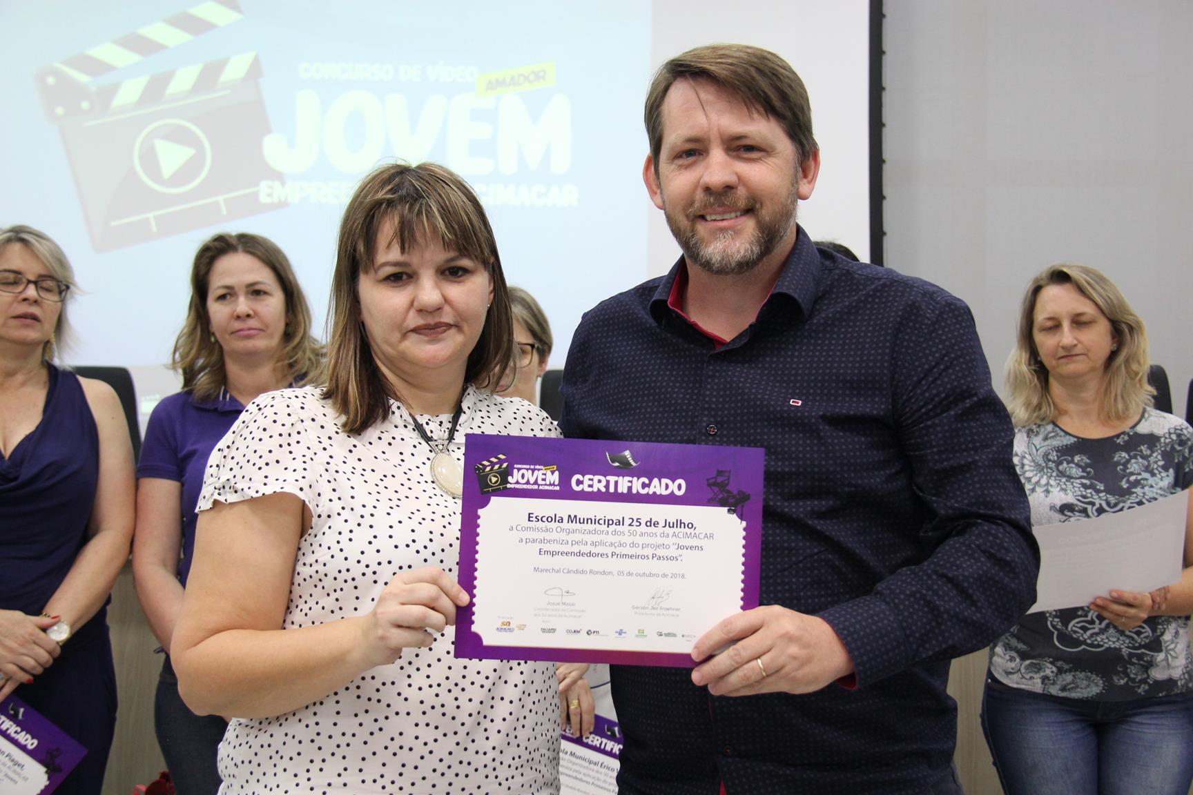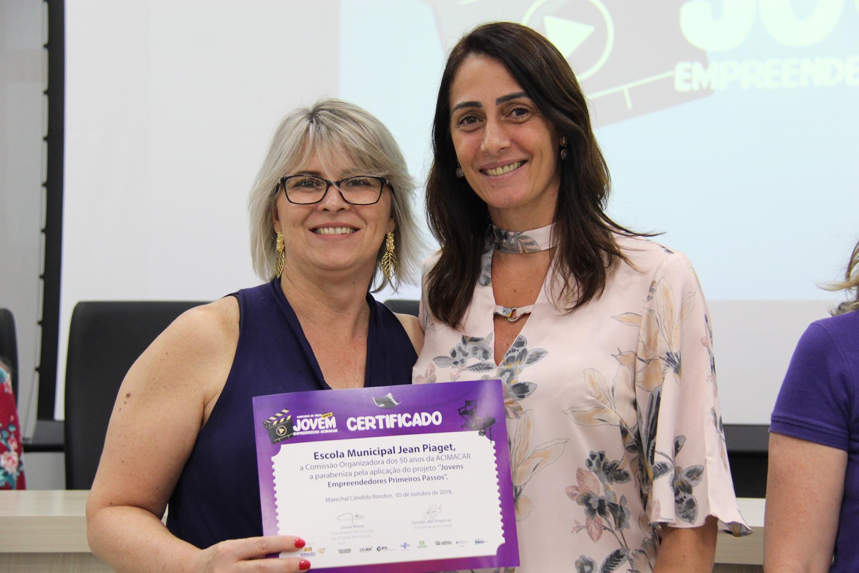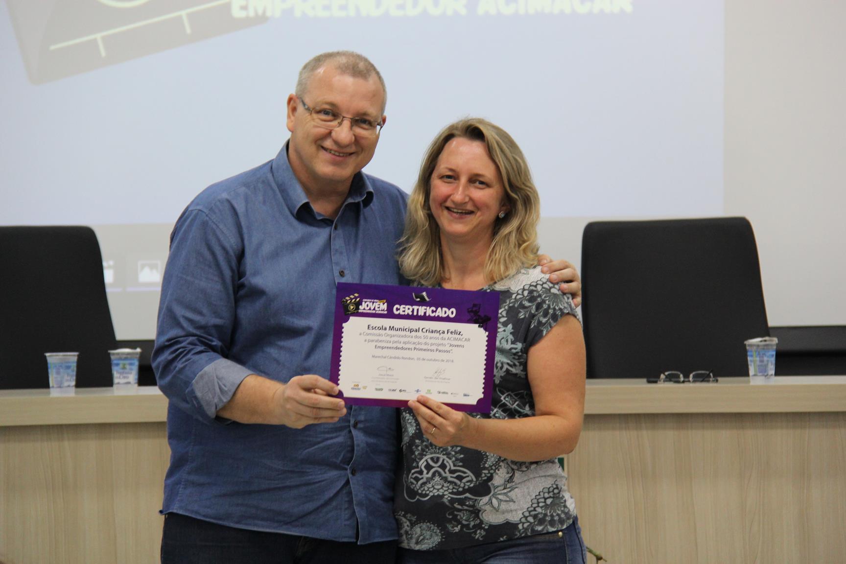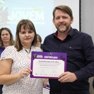 Na oportunidade, a Acimacar também entregou um certificado de reconhecimento às escolas municipais que realizam o projeto do Sebrae ‘Jovens Empreendedores Primeiros Passos’.