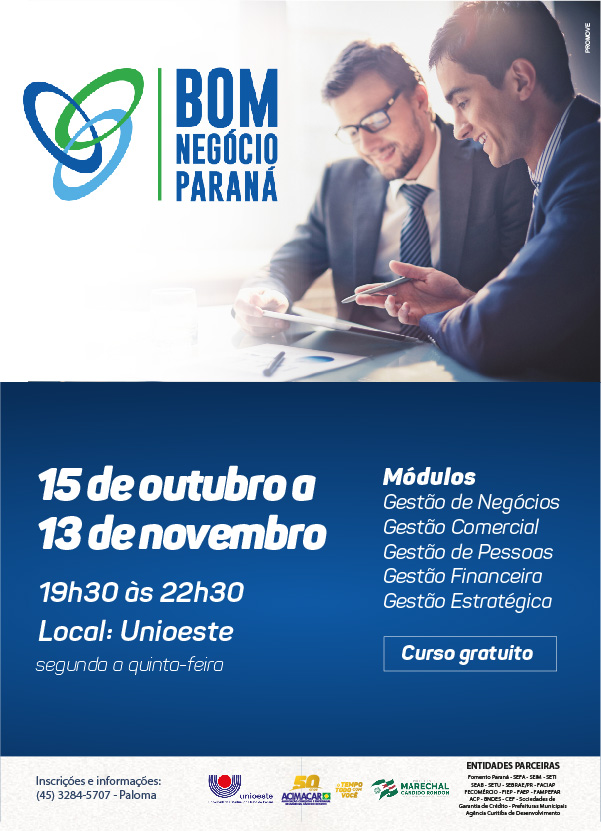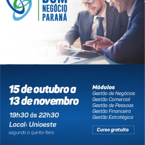 O curso gratuito Bom Negócio Paraná inicia nova turma nesta segunda-feira (15) e segue até 13 de novembro.