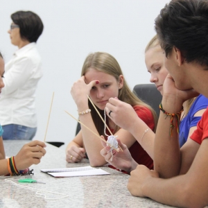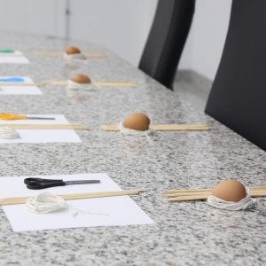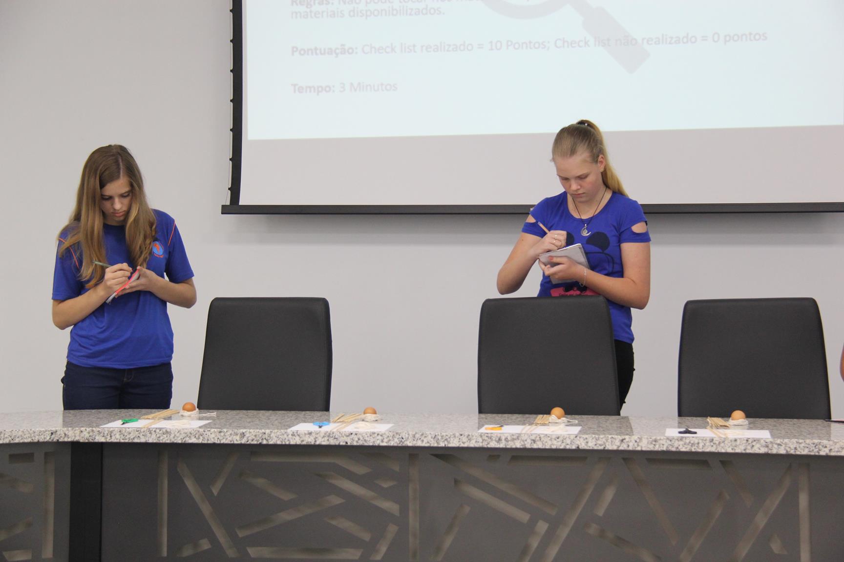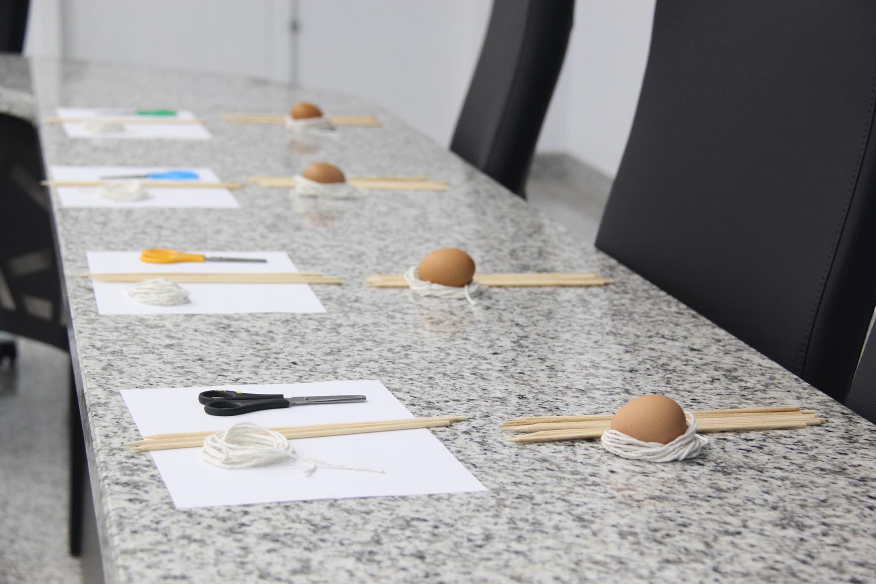 Os responsáveis pela interação foram os profissionais da Fundação Parque Tecnológico de Itaipu (PTI). Em um formato dinâmico, o analista do Programa de Desenvolvimento de Negócios do PTI, Gideão Matinc Claro, apresentou aos alunos a proposta “Hora do desafio do ovo”. O objetivo era criar um produto que protegesse o ovo de uma queda livre de um metro.