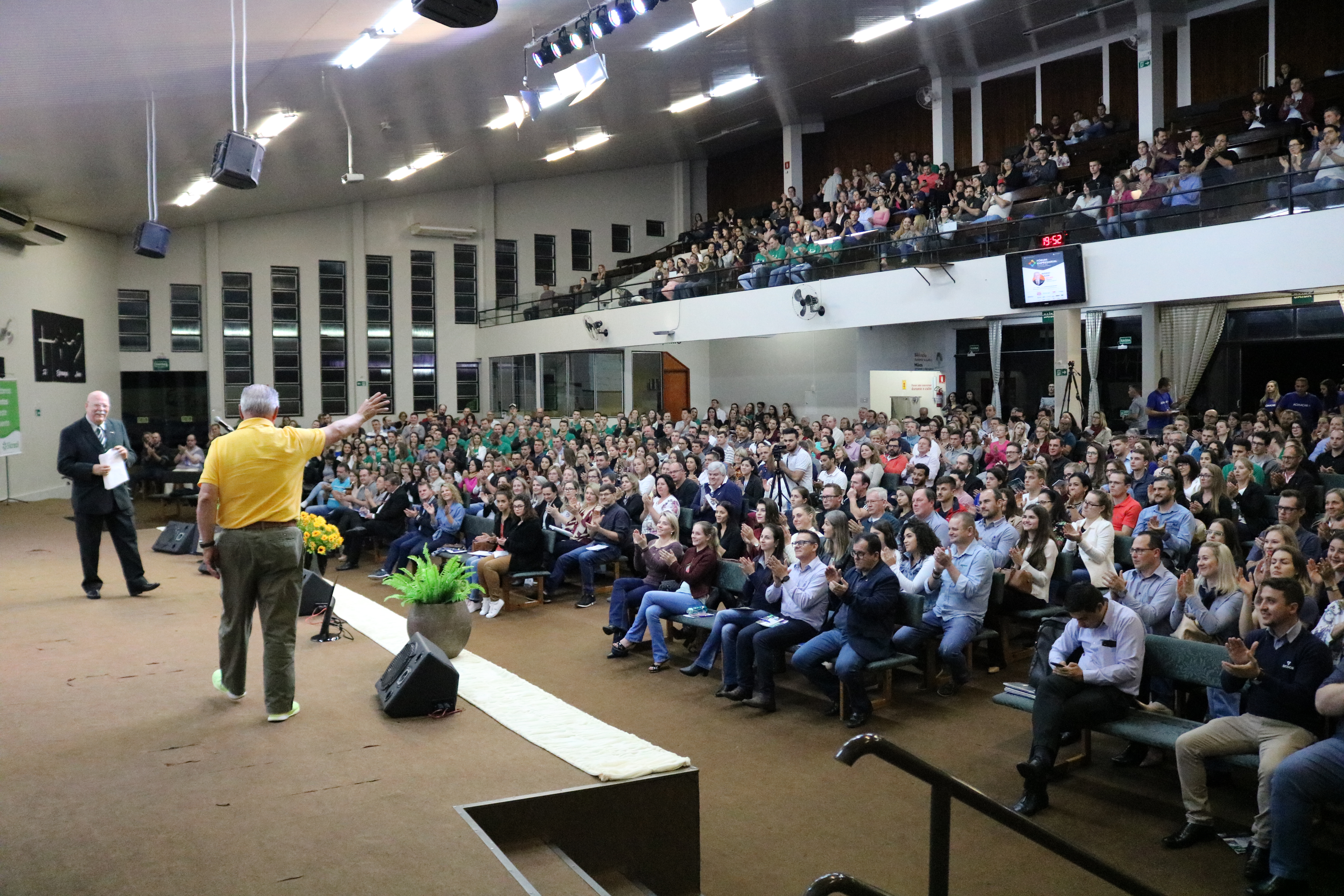 Cerca de 800 pessoas prestigiaram na segunda-feira (02) a palestra de abertura do Fórum Empresarial Acimacar 2019, proferida pelo fundador da Gazin Holding, Mário Gazin, no auditório Ecos da Liberdade, em Marechal Cândido Rondon.