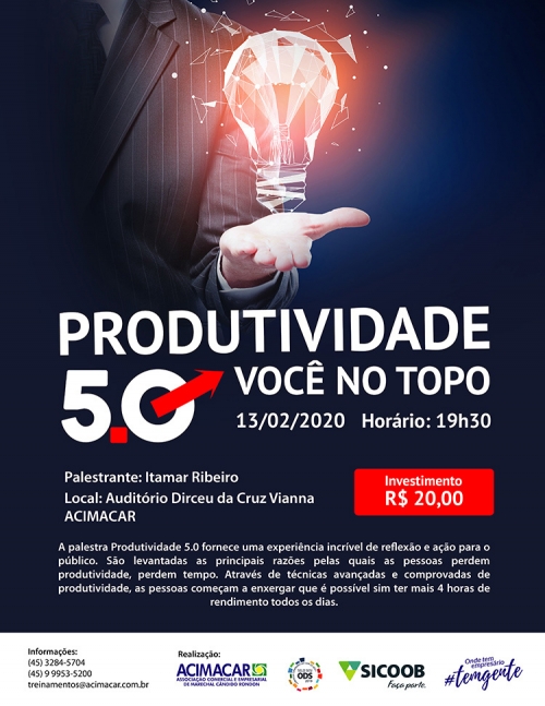 O primeiro treinamento de 2020 da Acimacar apresenta que, por meio de técnicas avançadas e comprovadas de produtividade, as pessoas começam a enxergar que é possível, sim, ter mais quatro horas de rendimento todos os dias.