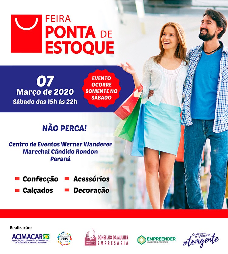 O Núcleo e Conselho da Mulher Empresária da Associação Comercial e Empresarial de Marechal Cândido Rondon (Acimacar), realiza no próximo sábado (07), a primeira edição do ano da tradicional Feira Ponta de Estoque.