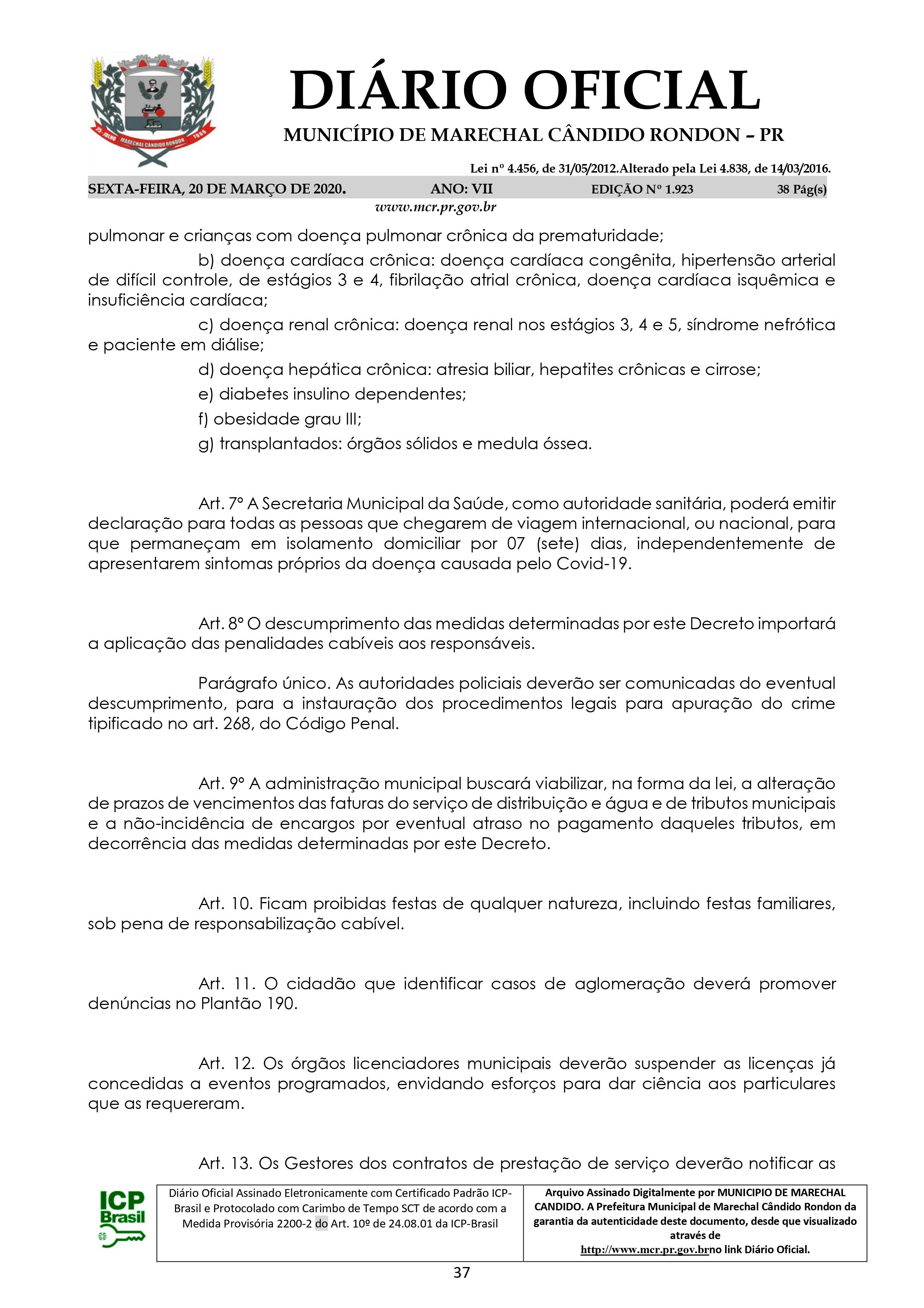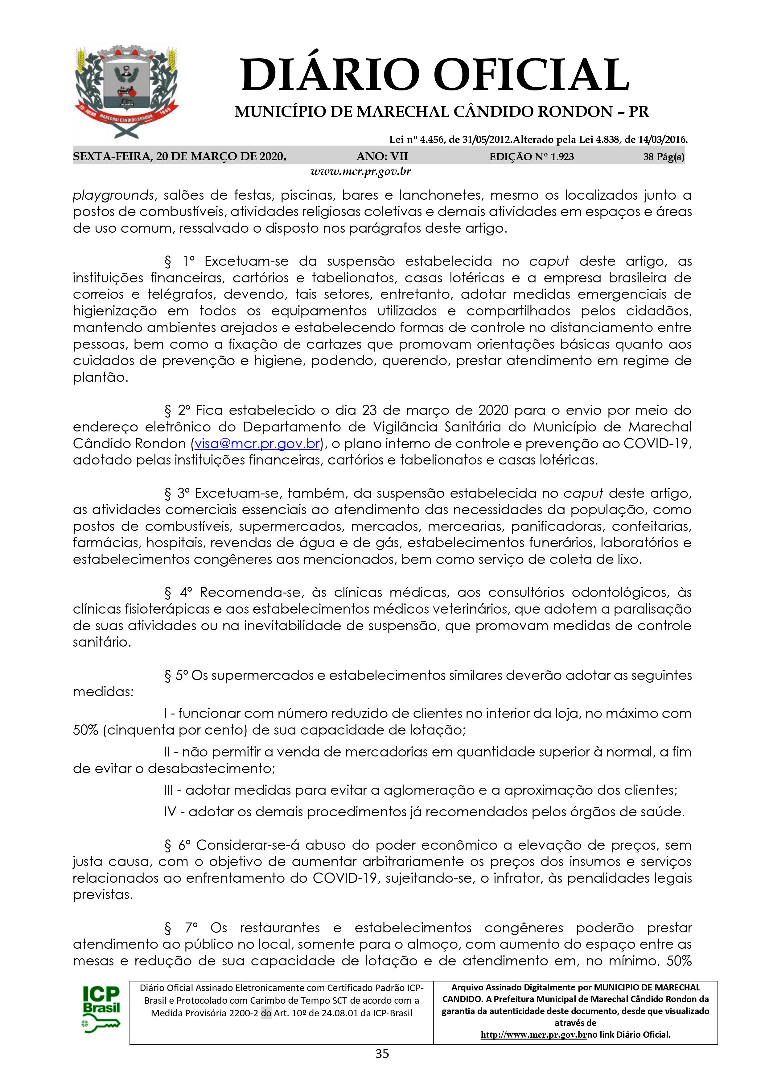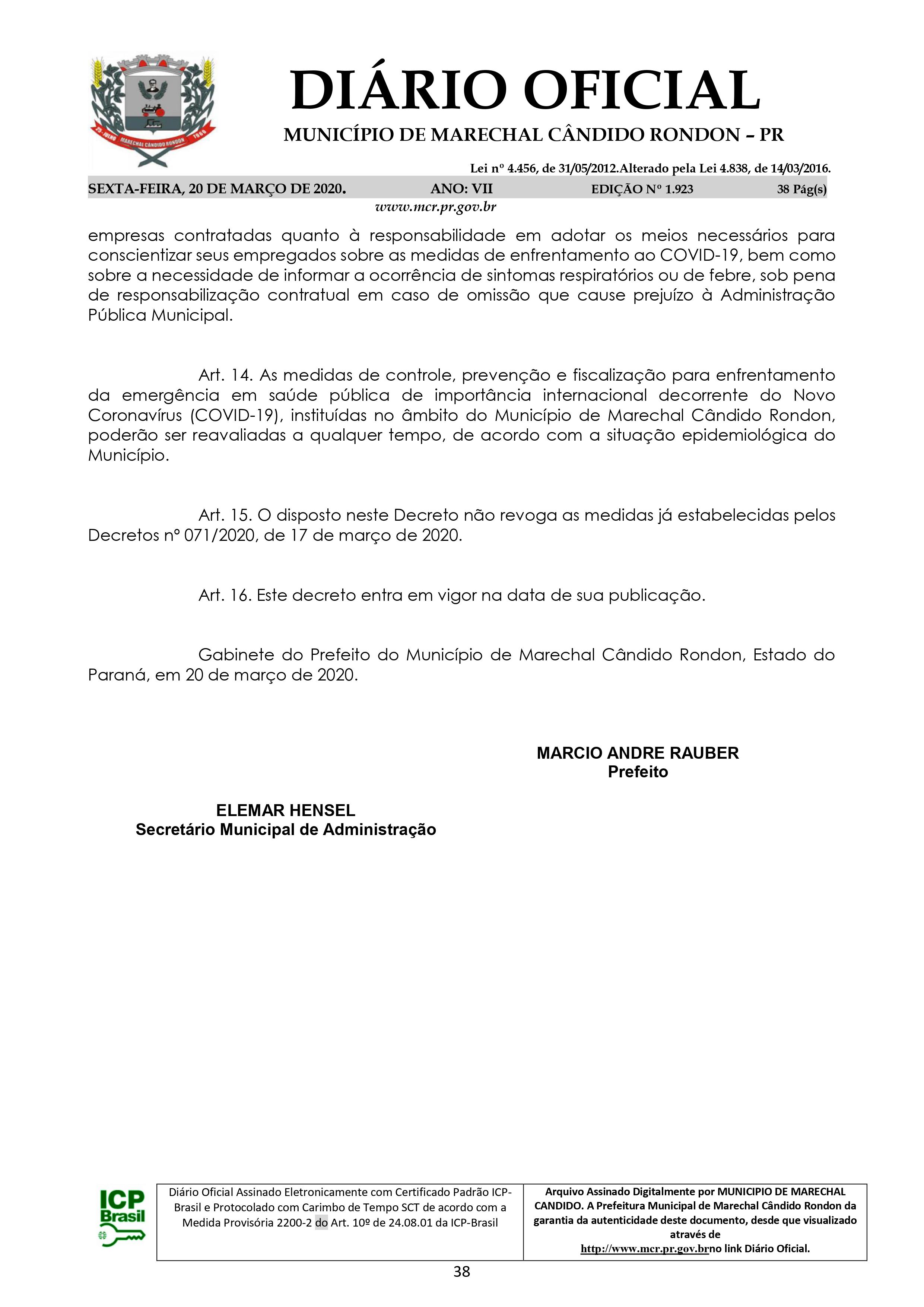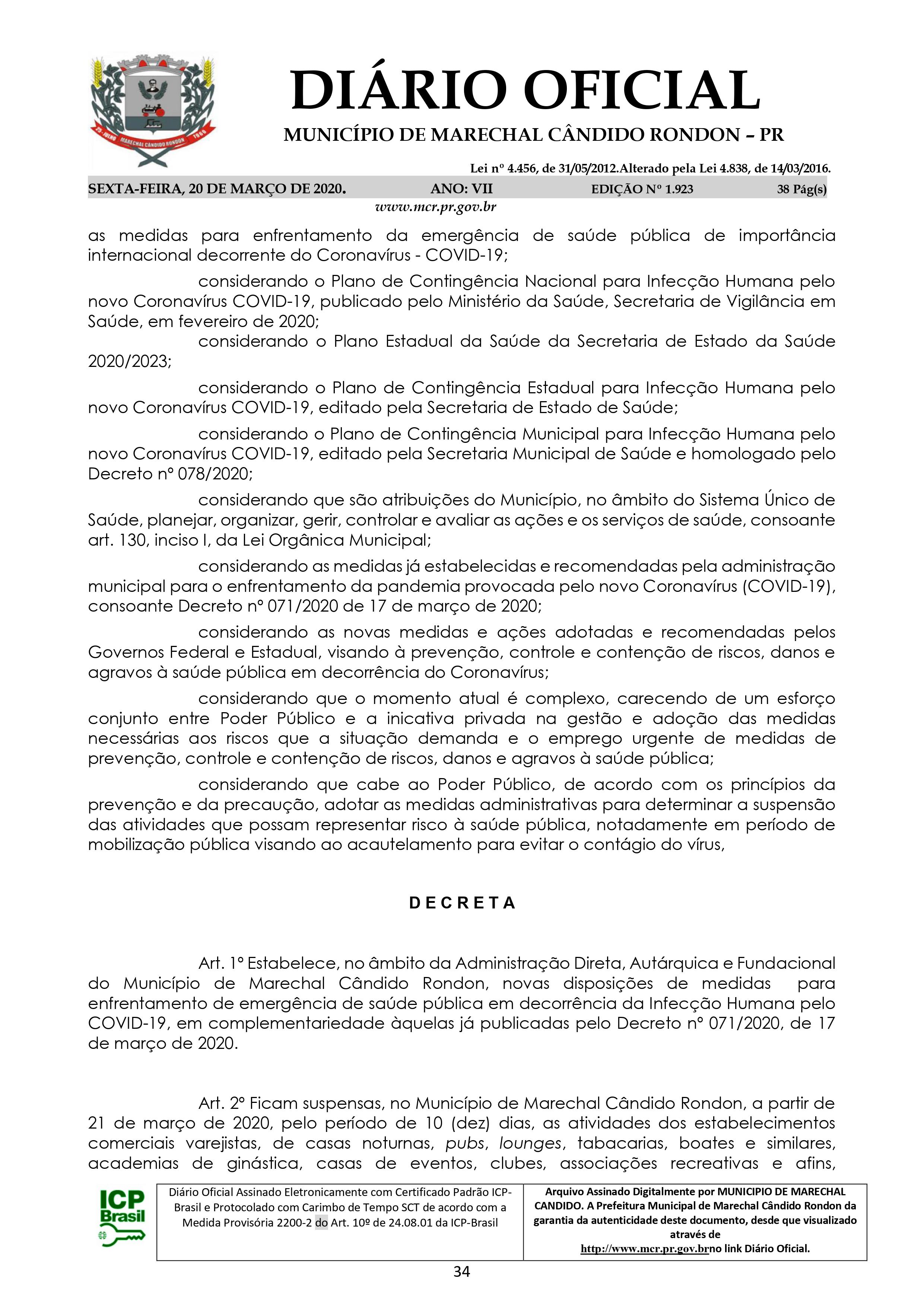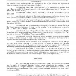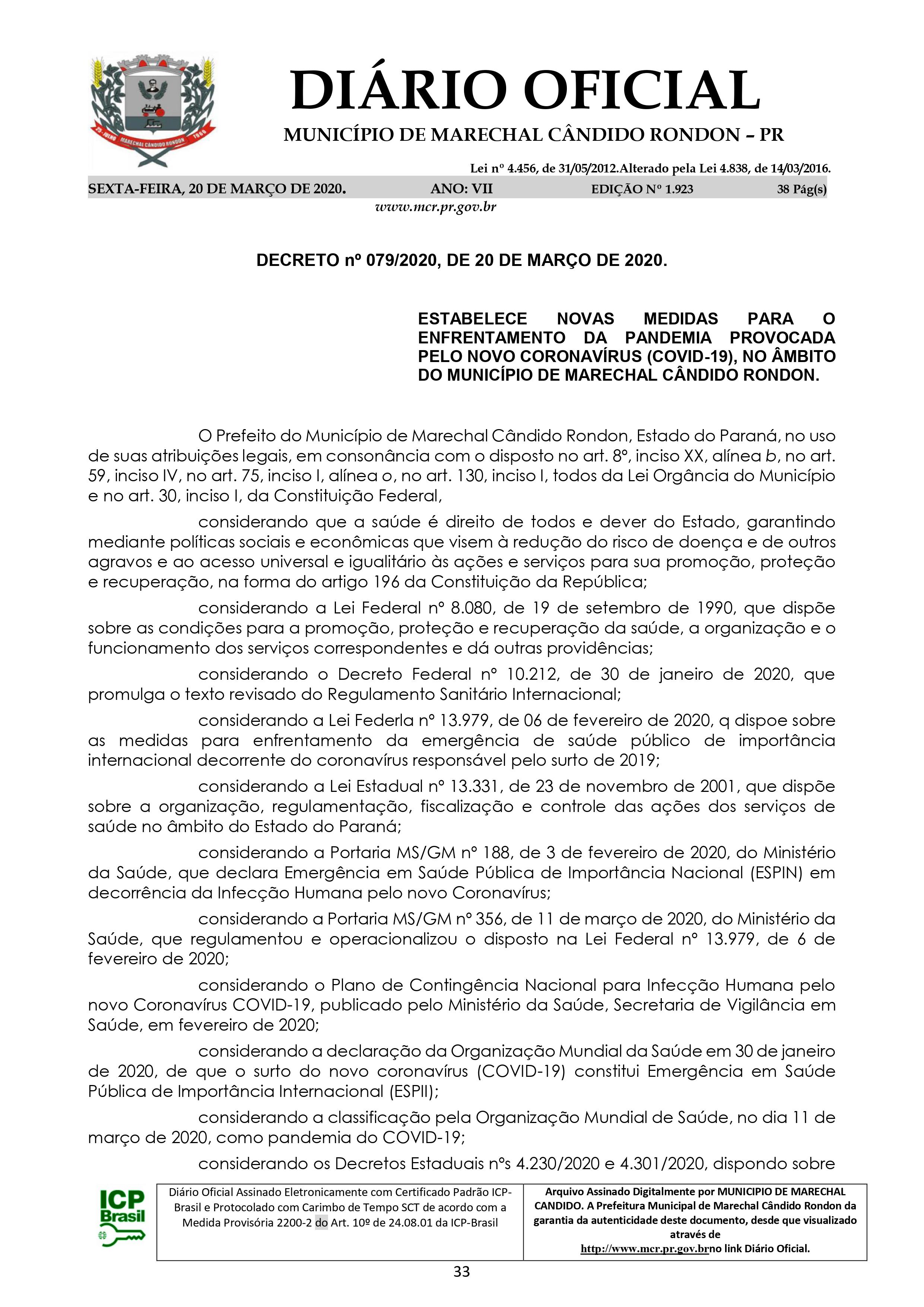 Decreto n° 079/2020, de 20 de março de 2020 - Município de Marechal Cândido Rondon