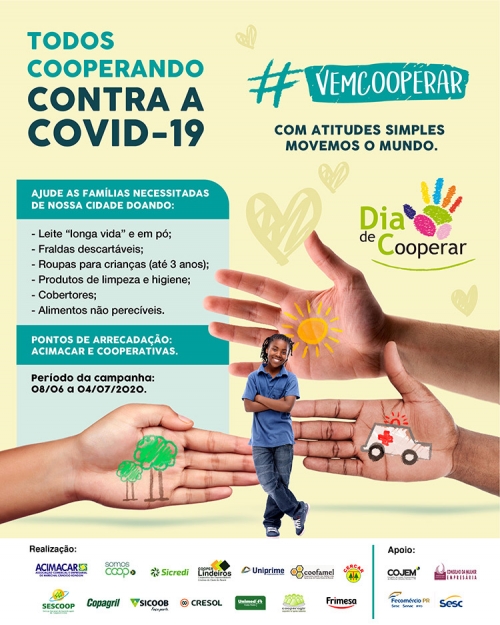 Leites convida para que a comunidade se una para auxiliar as famílias que mais precisam de ajuda neste momento, mostrando que os princípios do cooperativismo quando colocados em prática, tem resultados positivos para toda a população. “Entendemos que a união das cooperativas e seus colaboradores é essencial para fazer acontecer. Todos estão doando seu tempo e dedicação para ajudar a quem mais precisa”, salienta o presidente da Acimacar.