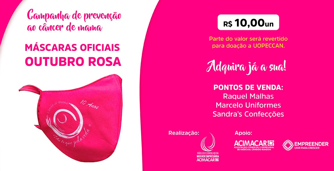 Todas as empresas do Conselho da Mulher Empresária já contam com pontos de recebimento de leite longa vida e, nos próximos sábados, as conselheiras realização a arrecadação nos supermercados de Marechal Cândido Rondon, das 8h30 às 18 horas. “Lembrando que além da arrecadação desses mantimentos, também estão à venda as máscaras do Outubro Rosa, que neste ano celebram os dez anos da campanha em Marechal Cândido Rondon. O valor arrecadado com a venda das peças também será destinado à Uopeccan”, conclui Sandra.