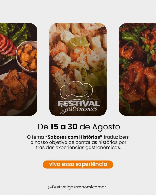 As novidades e informações completas estão disponíveis no Instagram oficial: @festivalgastronomicomcr.